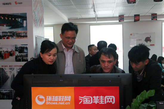 12月9日,由印江土家族苗族自治縣副縣長肖東慶、商務局王易局長帶領的領導一行蒞臨訊網網絡視察,泉州市豐澤區副區長駱春玲、環球鞋網副總陳代樸全程陪同。